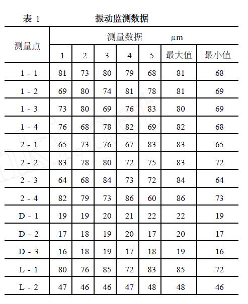 題,我們和制造廠家先后采用常規處理方法和狀態監測,終于找出了問題的根源,并進行了及時處理。處理后振幅值大大降低( ≤35μm) ,處于較好水平。現對故障分析檢測與處理過程進行簡單分析和介紹。