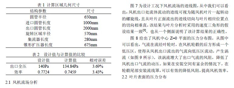 基于Realizable k-ε 雙方程湍流模型的軸流風(fēng)機(jī)全流場(chǎng)三維定常湍流計(jì)算,獲得了與實(shí)際情況相符的諸多流動(dòng)細(xì)節(jié),可得到如下結(jié)論: