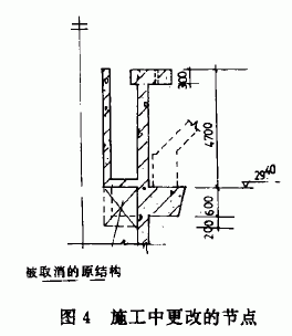 ,并委托加固處理。我們認為因原來節點受力(環形牛腿)已被破壞,這種修改造成了現節點不可能承受水柜荷重的后果。所以必需另采用支承