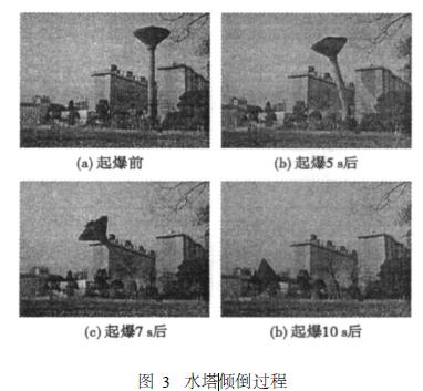 而本次水塔爆破共用藥量1. 99 kg,可見水塔爆破時炸藥爆炸產生的震動不會對西側宿舍樓造成危害。