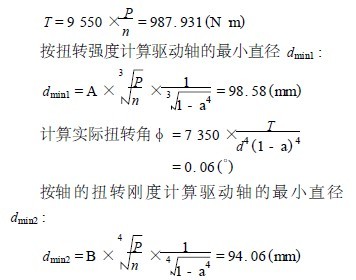 由此可以看出: d > dmin1 , d > dmin2 ,φ<φ許,即實(shí)際驅(qū)動(dòng)軸滿足設(shè)計(jì)要求。