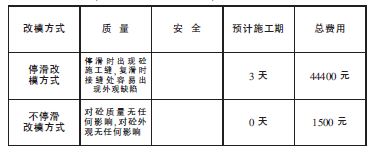 2)選擇方案經濟效益分析表:以黃驊港三期筒倉工程為實例,對現場不停滑改模作分析比較,見表1: