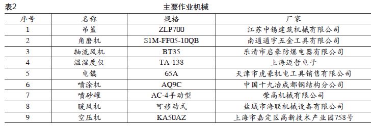 作業(yè)機械為表2中所列的主要作業(yè)機械及其他施工工具若干。