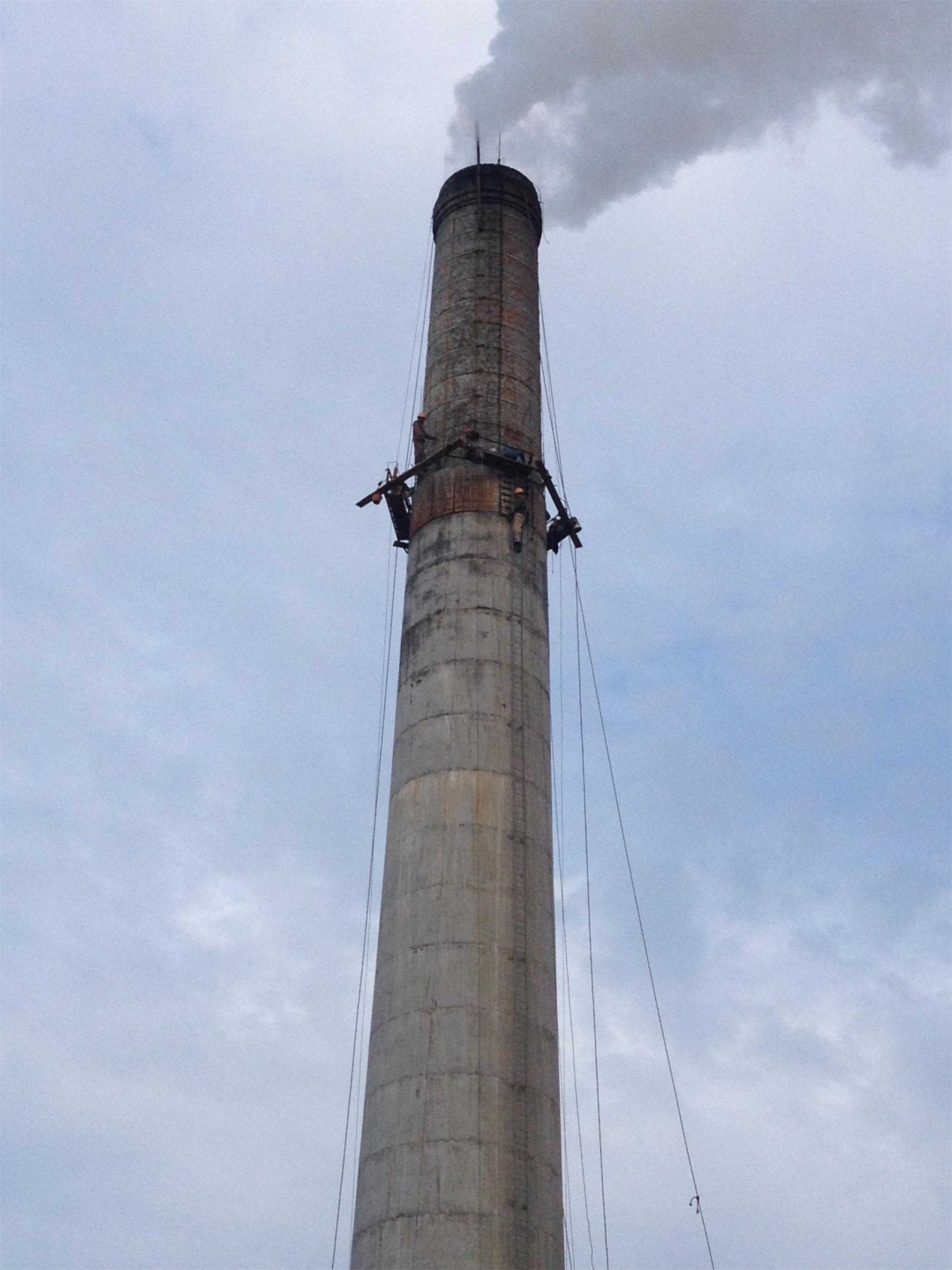 鋼筋混凝土煙囪的筒壁材質是為鋼筋混凝土的煙囪,混凝土煙囪相比磚煙囪強度高,抗震能力強,可以建很高的高度,但造價也比較高,施工難度相對較大,因此,拆除起來也是難度比較大的一項工程,拆除混凝土煙囪,根據高度的不同,拆除選擇的方法不一。鋼筋混凝土煙囪的高度有60m、80m、100m、120m等。