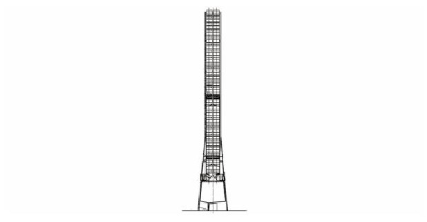 酸雨問題在世界范圍內(nèi)影響著人類的生存環(huán)境, 有必要減少硫元素擴(kuò)散到空氣中的量, 從源頭上遏制酸雨的發(fā)生。目前, 業(yè)界普遍采用濕法脫硫工藝, 其中, 無GGH (煙氣加熱器) 的濕法脫硫工藝在燃煤電廠里得到應(yīng)用[1-2], 它可以有效地起到節(jié)能減排的作用, 但該工藝會導(dǎo)致煙氣溫度下降、濕度上升, 加重?zé)焽璧母g[3-4], 為此, 人們積極探索新材料來解決這一問題。玻璃纖維增強塑料 (俗稱玻璃鋼, FRP) 因具有良好的可設(shè)計性、突出的耐蝕性而在歐美等發(fā)達(dá)國家燃煤電廠脫硫煙囪防腐蝕工程中廣泛應(yīng)用。經(jīng)過廣大科技工作者的深入研究, 我國電力規(guī)劃設(shè)計部門明確指出:“玻璃鋼可以在國內(nèi)脫硫煙囪防腐蝕工程中被采用”。作為首個雙管懸掛式FRP排煙內(nèi)筒, 國內(nèi)某新建電廠裝機總量為2×660 MW, 排煙筒內(nèi)徑為7 200 mm, 每節(jié)筒體高8 000mm, 標(biāo)高240 000 mm, 平均壁厚21 mm, 見圖1。由圖1可見, 排煙筒的兩節(jié)筒體通過內(nèi)、外表面濕法手糊工藝進(jìn)行連接。