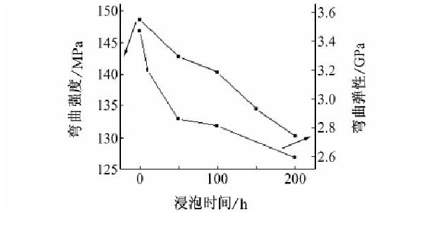 圖5 彎曲強度與浸泡時間的關(guān)系Fig.5 Relationship between flexural strength and soak time