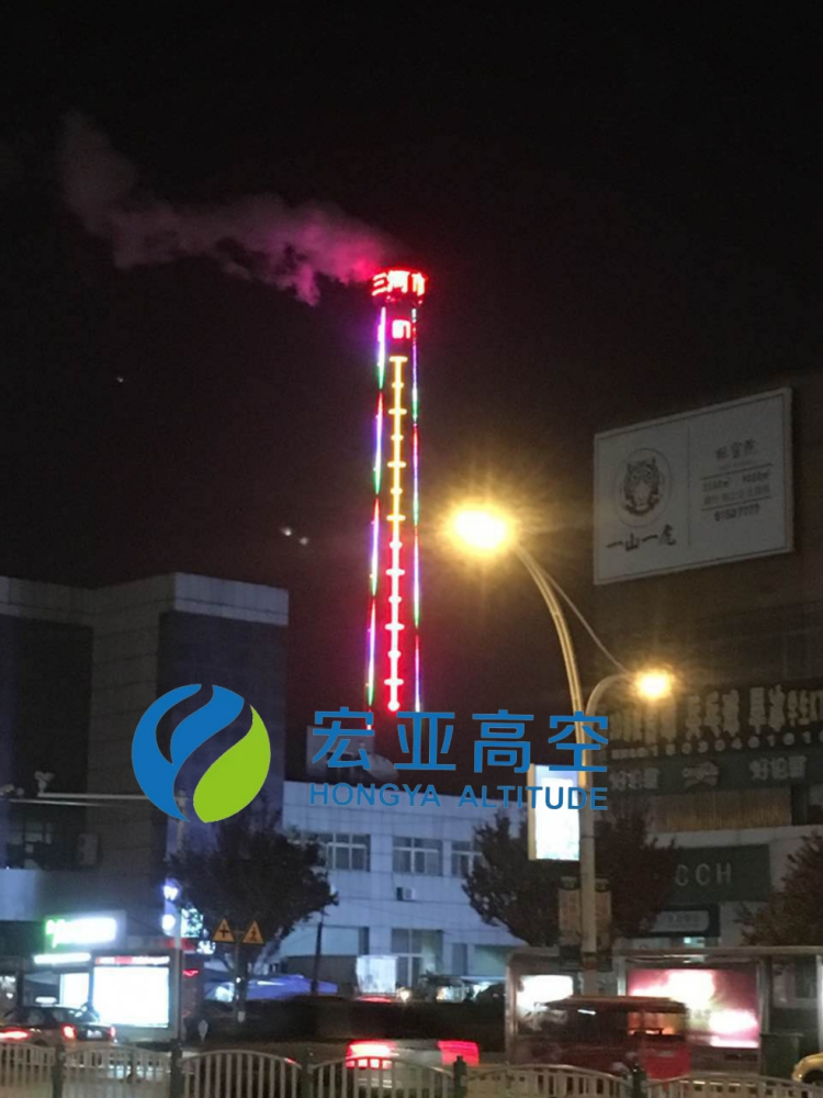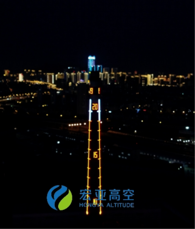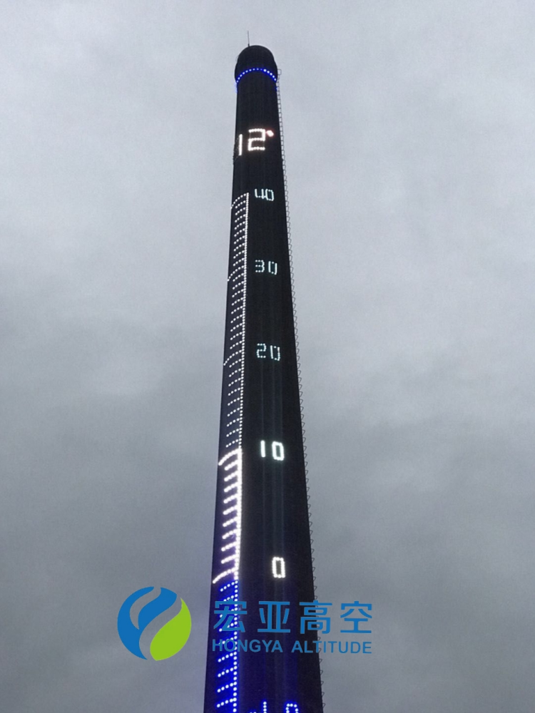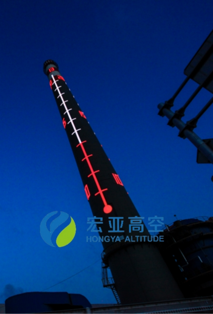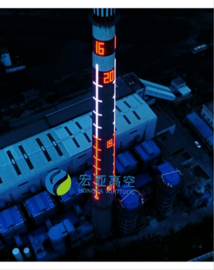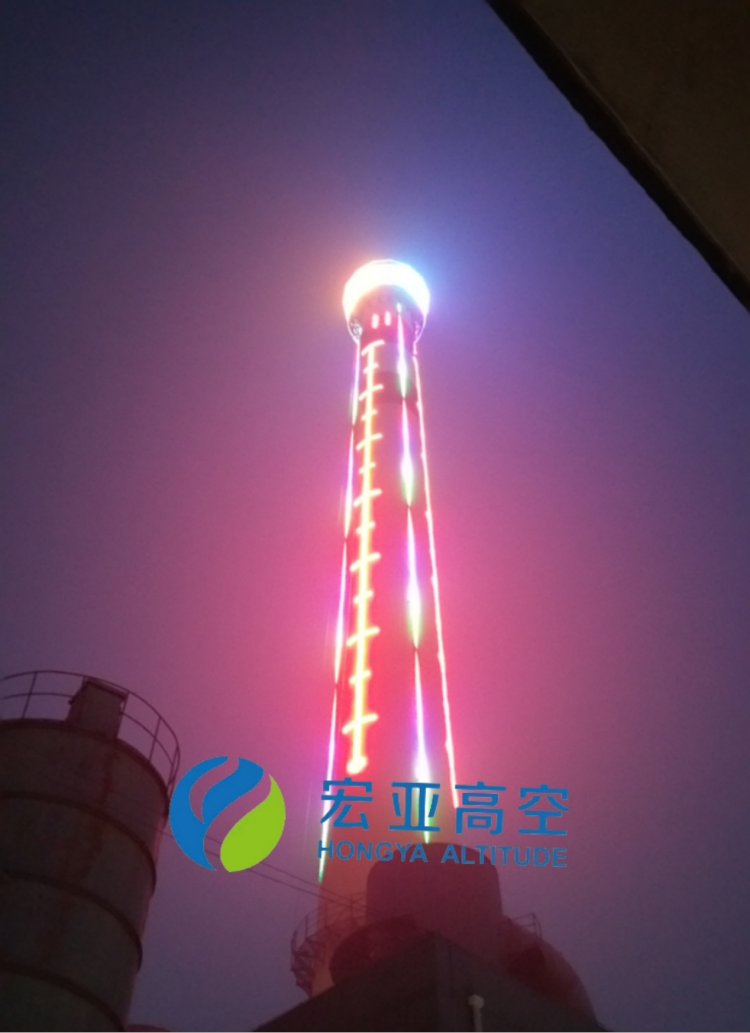 該煙囪實際高度為55米,實際使用點光源LED燈數(shù)量約1700盞,業(yè)主實際投資約46萬元(除電費)。